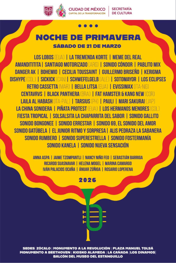 Con esta programación, Noche de Primavera 2026 reafirma su misión de convertir a la capital en un escenario abierto donde la música, la diversidad y la cultura puedan disfrutarse sin costo y al alcance de todas y todos.