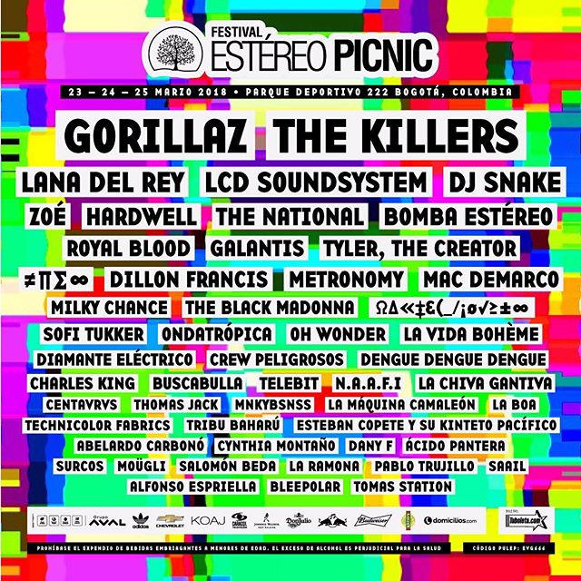 2.- La novena edición se realizó del 23 al 25 de marzo de 2018 en el Club Briceño 18 en Sopo, contó con uno de los mejores line up que fue encabezado por The Killers, Gorillaz y Lana del Rey. Fue uno de los años con mayor asistencia en la historia del festival superando el récord de más de 80.000 personas que asistieron y vivieron un gran momento de la historia del FEP. Inolvidables: LCD Soundsystem, The Nationals, Metronomy y Mac DeMarco.