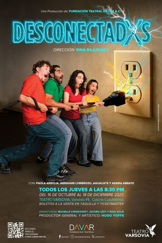 En Desconectadxs participan Paola Arrioja, Abraham Lombroso, Aguacate y Assira Abbate, bajo la dirección de Rina Rajlevsky. En este montaje podemos ver la visión de Jacobo levy, Michel Chisikovski y Raúl Solís, tres dramaturgos que sin imaginar cómo, vinculan sus recuerdos y experiencias en una obra de obras breves que nos muestran de forma cómica una de las tantas formas para reencontrarnos con los nuestros, con nosotros y los cambios que muchas veces nuestras reacciones frente a este, son más soportables acompañados.