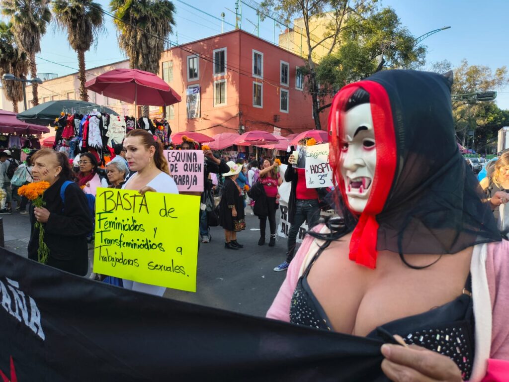 Mientras caminábamos por La Merced, muchas trabajadoras sexuales se quedaban en la banqueta mirando el paso de la protesta. Algunas quisieron unirse, pero sus padrotes las habían amenazado: si se acercaban, les cobrarían una cuota.