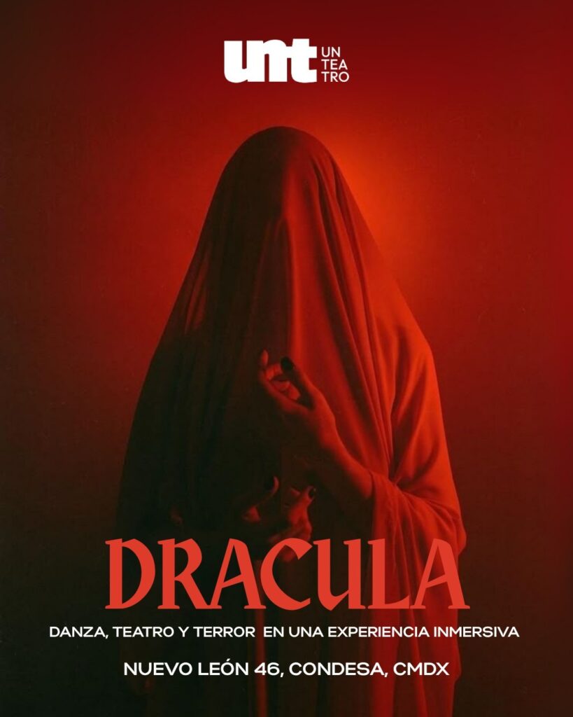 “No era una declaración, era una pregunta a la que respondí… SI”. El terror es un género muy seductor, lleno de misterio y erotismo, justo antes de la perdición o la redención. En este montaje DRÁCULA se reinterpreta con textos fuertes y reflexivos sobre la inmortalidad, la necesidad de la conquista, la adrenalina de la cacería…de jugar entre ser presa y cazador, con este y más elementos juega la directora y dramaturga Jessica Sandoval, acompañada por el talentoso elenco: Alberto González, Rosa Villanueva, Clarissa Núñez, Diego Martínez Villa, Antonio Soria, Genny Galeano Adrian Roman, Xana Jaimes e Idalina Hernández (alternan).