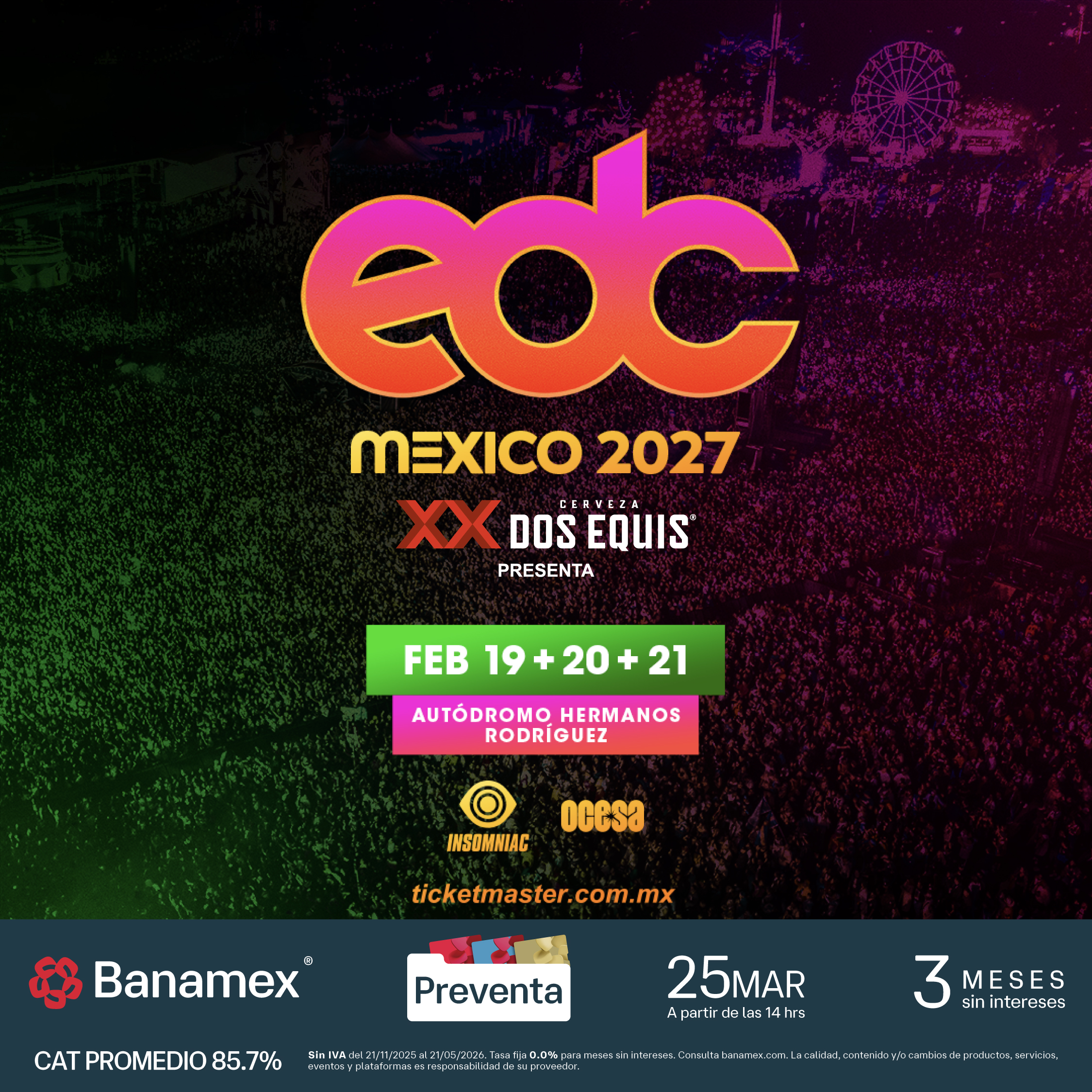 Tras una histórica edición en 2026, el Electric Daisy Carnival (EDC) México confirma su decimotercera edición del 19 al 21 de febrero de 2027 en el Autódromo Hermanos Rodríguez. El festival de Insomniac se consolida no solo como un referente musical, sino como un modelo de sostenibilidad y responsabilidad social.