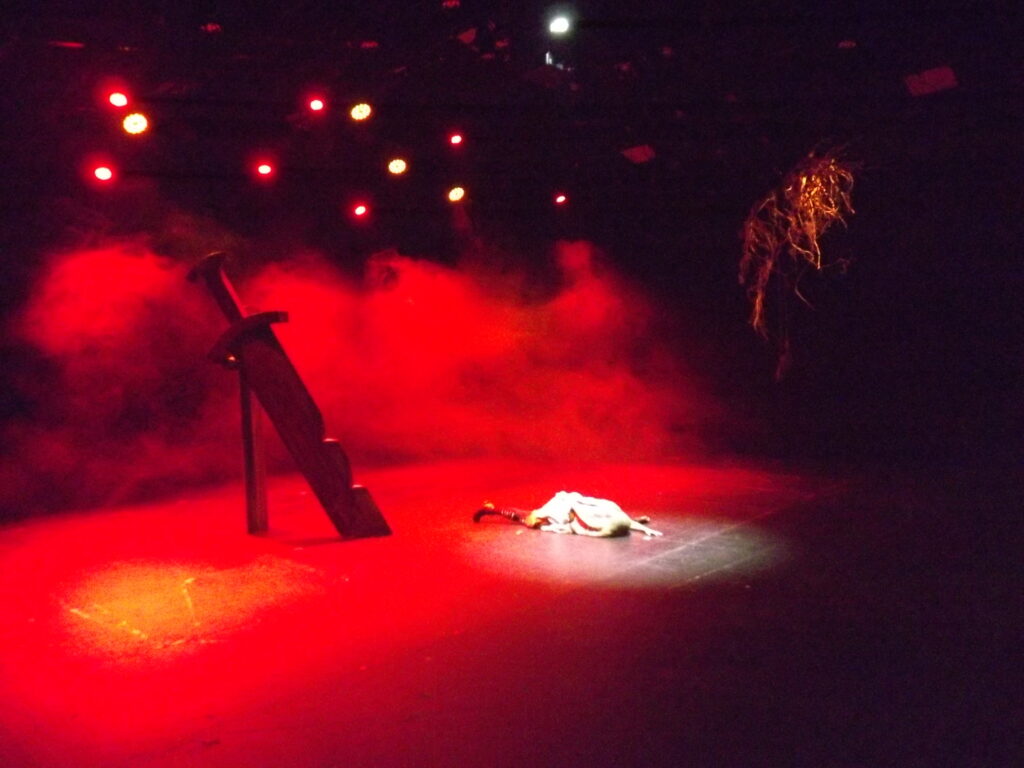 El vestuario, la iluminación y la música —creada en escena— complementan la experiencia. Tambores, voces, golpes y gritos: la batalla toma forma en un lobo hambriento y resentido.