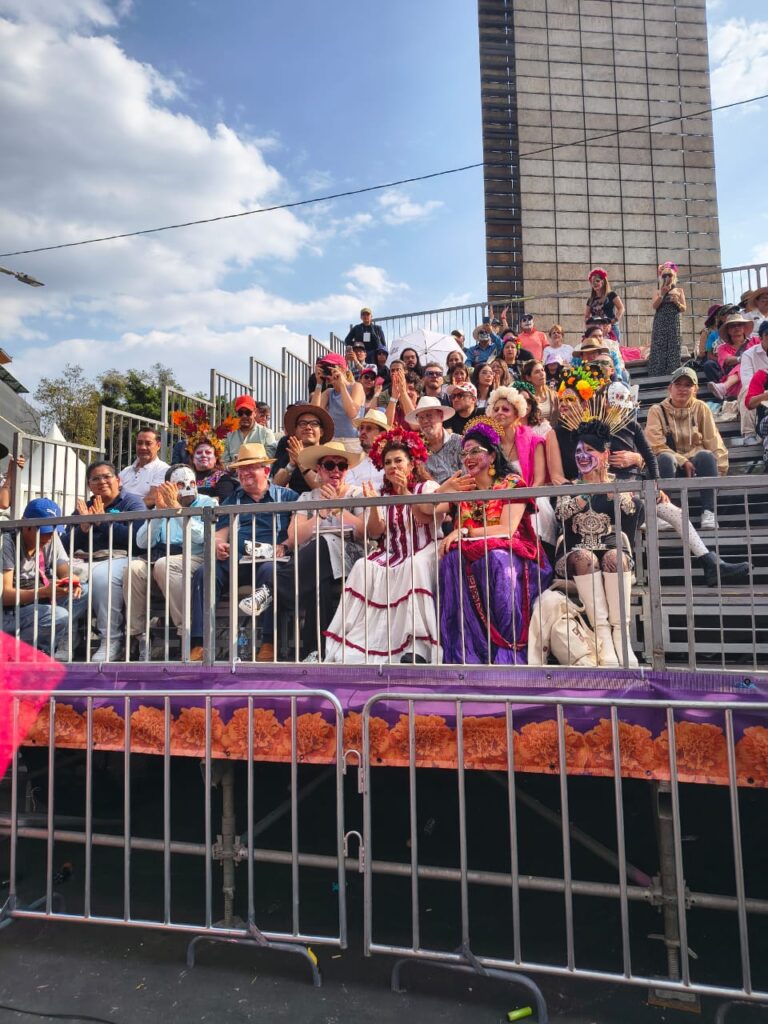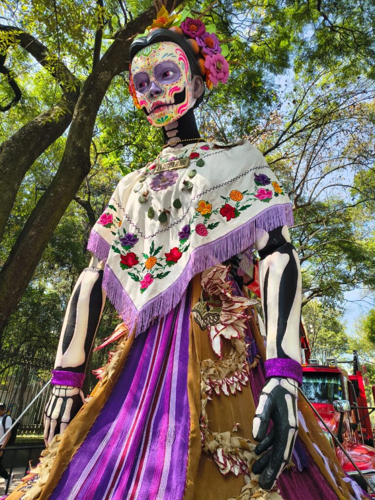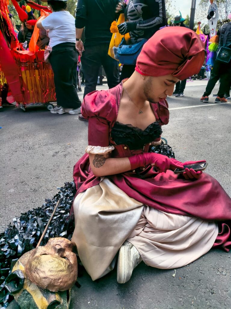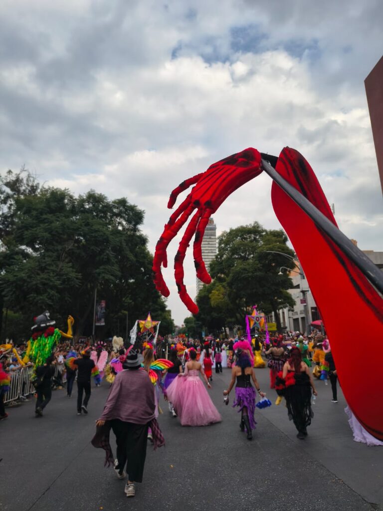 A esa hora el silencio aún tenía paciencia. El desfile sería hasta las dos —aunque arrancó casi a las tres—, pero el tiempo se estiraba entre risas, delineadores y abrazos. Luego tocó empujar las mojigangas desde la Glorieta de Insurgentes hasta Chapultepec.