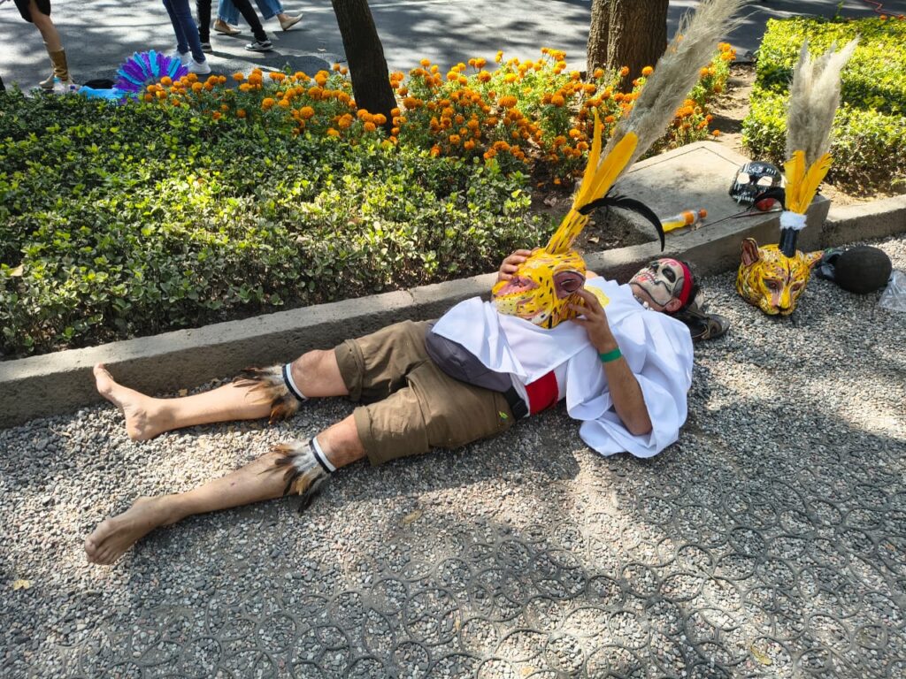 Los pies dolían, el clima jugaba entre sol y sombra. Yo cargaba el brazo de una mojiganga de diablo, saludando al público con movimientos lentos. El desfile siguió hasta más allá del Zócalo, casi hasta Pino Suárez.