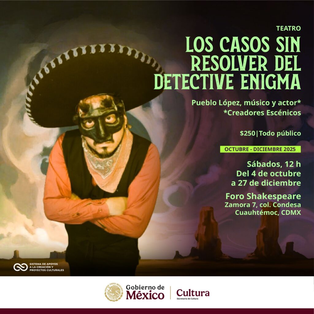 Los casos sin resolver del Detective Enigma se presentan los sábados en el Foro Shakespeare a las 12 pm, a partir del 4 Octubre al 27 de diciembre. El montaje está dirigido a infantes y adolescentes en adelante.