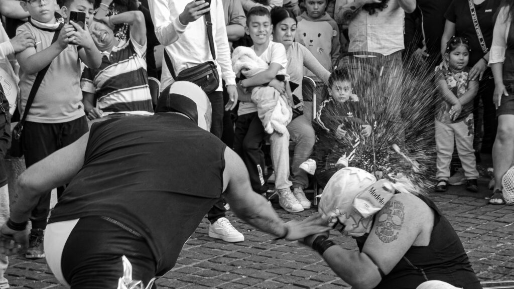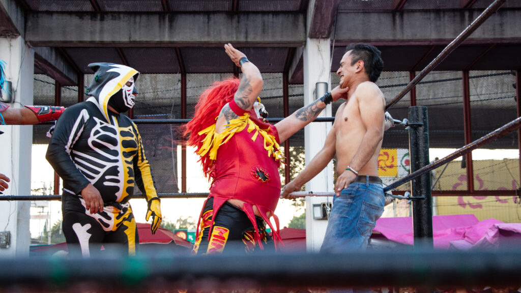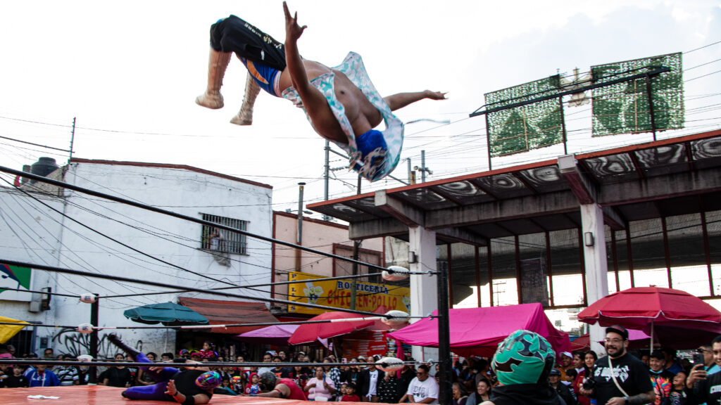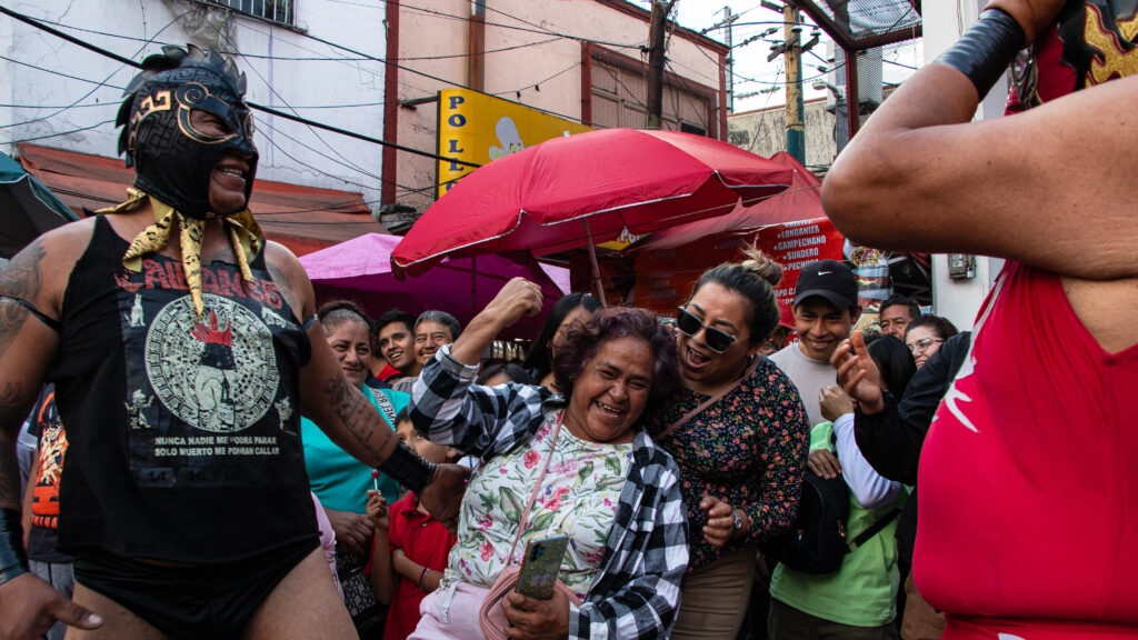 La gente ya se juntaba entre los puestos del tianguis del domingo, luchadores salían de la carpa con diferentes atuendos y máscaras, algunos subían al cuadrilátero.